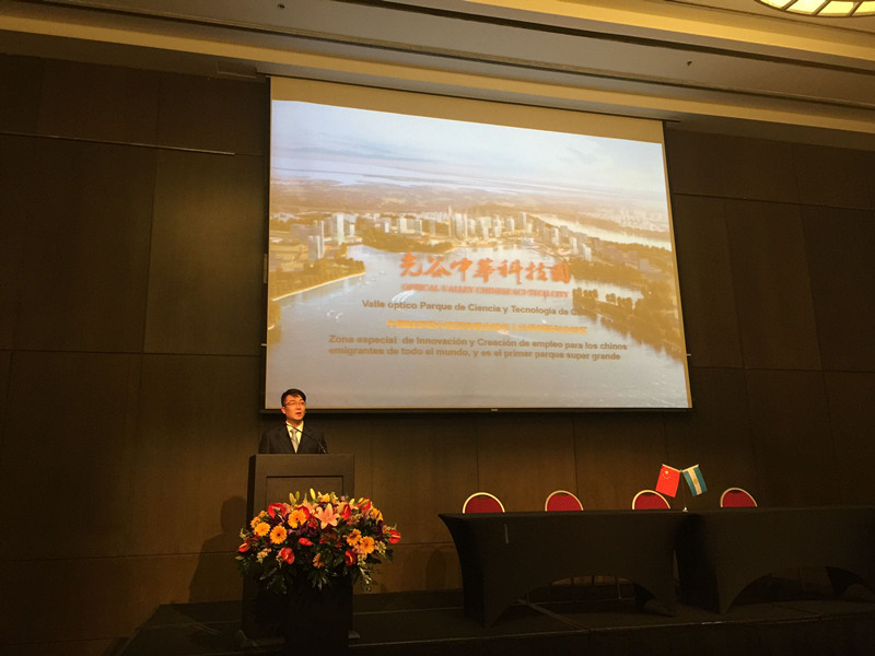 4月13日上午,“中國(guó)武漢——阿根廷經(jīng)貿(mào)合作洽談會(huì)”在阿根廷首府布宜諾斯艾利斯成功舉辦,湖北省委常委、武漢市市委書記阮成發(fā)、中國(guó)駐阿根廷大使楊萬明,阿根廷—中國(guó)生產(chǎn)及工商業(yè)協(xié)會(huì)主席carlios;pedro;spadone等領(lǐng)導(dǎo)和嘉賓出席了會(huì)議并致辭,來自阿根廷政府和工商界、企業(yè)代表,華商僑領(lǐng),商會(huì)代表及媒體近400余人參加了會(huì)議。中華園作為武漢市重點(diǎn)推薦的企業(yè)代表,在會(huì)上進(jìn)行了專題宣傳推介。重點(diǎn)向阿方企業(yè)、華僑華商及僑商協(xié)會(huì)介紹了光谷中華科技園的投資環(huán)境、規(guī)劃設(shè)計(jì)、產(chǎn)業(yè)方向、政策優(yōu)勢(shì)等基本情況,重點(diǎn)推介了今年即將動(dòng)工建設(shè)和啟動(dòng)全球招商的“華人華僑創(chuàng)新創(chuàng)業(yè)中心”、以及環(huán)牛山湖綠道及文化旅游帶等項(xiàng)目,引起了與會(huì)嘉賓和駐阿華僑華商的廣泛關(guān)注。期間,張曉玲副主任還與阿根廷華人進(jìn)出口商會(huì)會(huì)長(zhǎng)袁建平先生、阿根廷華僑華人聯(lián)合總會(huì)主席陳瑞平先生、阿根廷浙江總商會(huì)會(huì)長(zhǎng)包偉將先生等華人企業(yè)、商會(huì)代表進(jìn)行了深入對(duì)接,探討了在中華園建設(shè)開發(fā)南美風(fēng)情園及文化旅游項(xiàng)目的可行性,同時(shí)誠(chéng)摯邀請(qǐng)阿根廷華僑華商參加今年6月份在武漢舉辦的第十六屆華創(chuàng)會(huì),并赴中華科技園考察參觀。