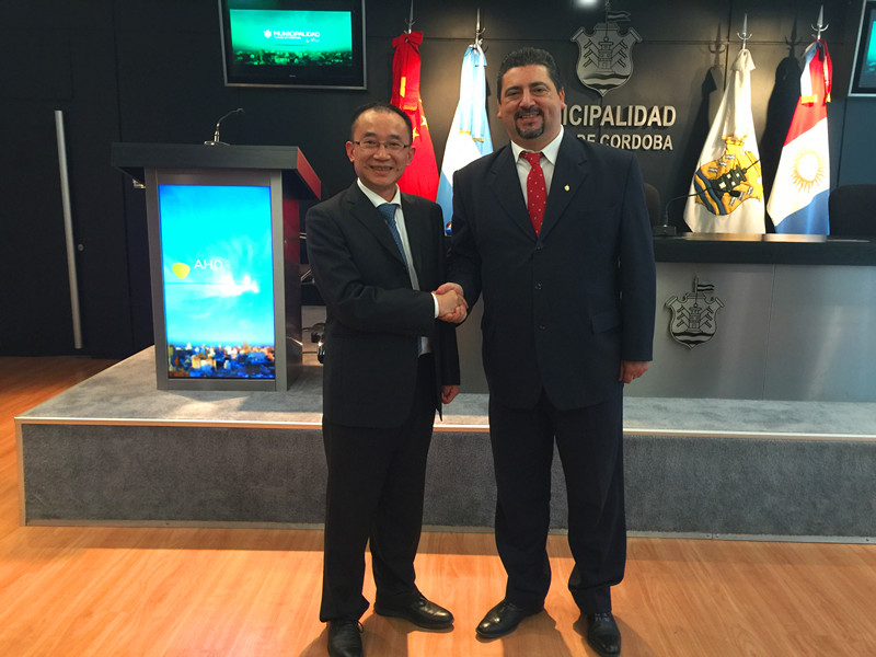 4月10日,代表團(tuán)一行赴武漢市友好城市科爾多瓦參加了雙方城市友好合作交流洽談會(huì),受到了科爾多瓦市政府秘書長(zhǎng)roberto;m.yalovetzky先生的熱情接待,同時(shí)與阿根廷中華工商企業(yè)聯(lián)合總會(huì)徐萬壽先生等當(dāng)?shù)厝A僑華商代表進(jìn)行了交流和洽談。