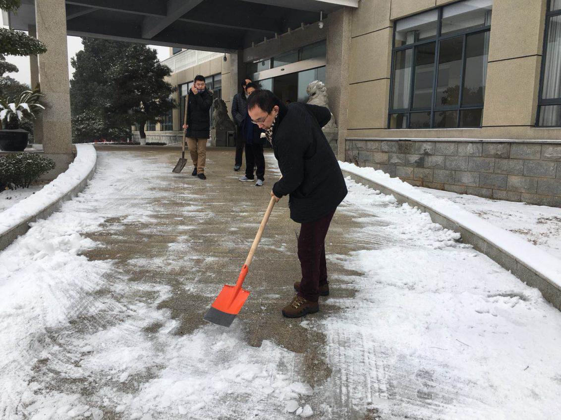 集團(tuán)公司董事長張曉玲、總經(jīng)理江中平親自帶隊(duì)上陣,鏟除道路積雪