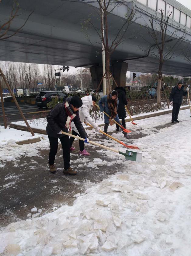 ;降雪發(fā)生后,集團(tuán)公司自元月27日開始,全體干部職工取消休假,組織開展各園區(qū)內(nèi)部及周邊道路鏟雪除冰工作,集團(tuán)公司董事長張曉玲、總經(jīng)理江中平赴現(xiàn)場親自掛帥,各部門分管領(lǐng)導(dǎo)、所屬企業(yè)主要負(fù)責(zé)人現(xiàn)場靠前指揮,即時(shí)統(tǒng)籌調(diào)度,緊急安排部署,全面應(yīng)對處置,大家不畏嚴(yán)寒,冒著飛雪戰(zhàn)斗在除冰鏟雪第一線。集團(tuán)公司及各所屬企業(yè)共出動(dòng)300余人次,機(jī)械、人工鏟雪和撒鹽融雪相結(jié)合清除15條主次干道、人行道積雪,確保各所屬企業(yè)、園區(qū)管轄范圍內(nèi)道路暢通,確保居民生命財(cái)產(chǎn)安全,確保正常工作生活秩序,全力打贏融雪保暢攻堅(jiān)戰(zhàn)!